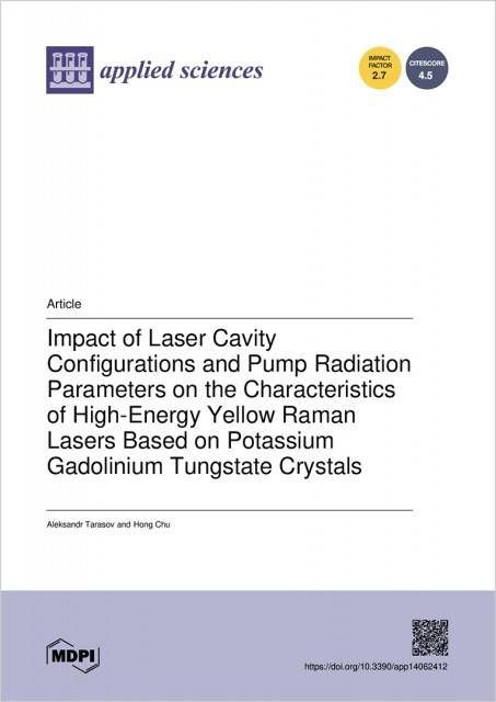 이번 연구 논문은 고에너지 황색 라만 레이저(Yellow Raman Laser)의 공진기(Resonator) 구성에 관한 새로운 연구 결과를 담고 있으며, ‘레이저 공진기 구성과 펌프 복사 매개변수가 포타슘 가돌리늄 텅스테이트 결정을 기반으로 한 고에너지 황색 라만 레이저의 특성에 미치는 영향’이라는 제목으로 발표되었다. 연구에는 레이저옵텍의 회장 주홍 박사와 수석 연구원 알렉산드르 타라소프 박사(Alexandr Tarasov, PhD)가 공동 참여했다.