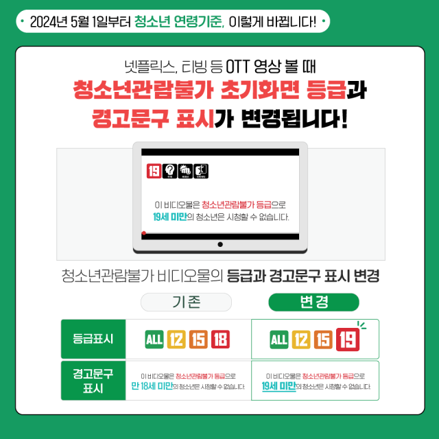 '19세 이상'부터 청소년관람불가 영화 입장가능, "5월 1일부터 시행"