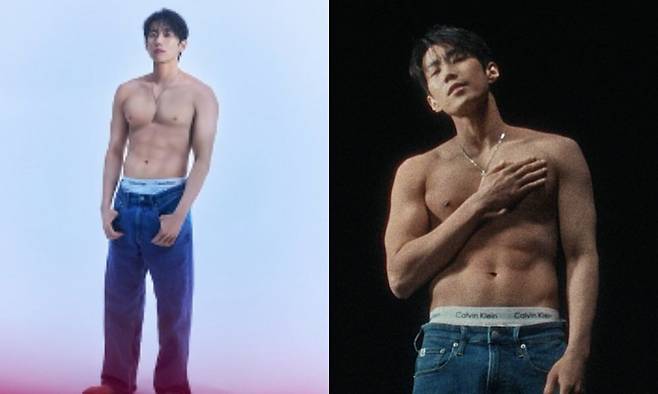 특히나, 타투를 없앤 상반신을 탈의하고 오직 캘빈클라인의 데님 하나만을 착용하며 눈길을 끌었다. 박재범이 착용한 캘빈클라인 데님은 어센틱 스트레이트핏으로 그의 조각 같은 몸매와 조화되어 더욱 완벽한 핏을 드러냈다.
