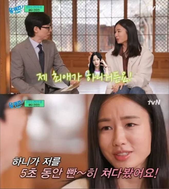 특히 지난해 개최된 '제44회 청룡영화상' 당시 뉴진스의 축하 공연에서 팬심을 보인 안은진에 박하선이 "동질감을 느꼈다"고 하자, 안은진은 "뉴진스 데뷔했을 때 '종말의 바보'를 찍고 있었다. 분장차에서 누가 최애인지 수다를 떨었다. 너무 예쁘다"며 팬심을 고백했다.