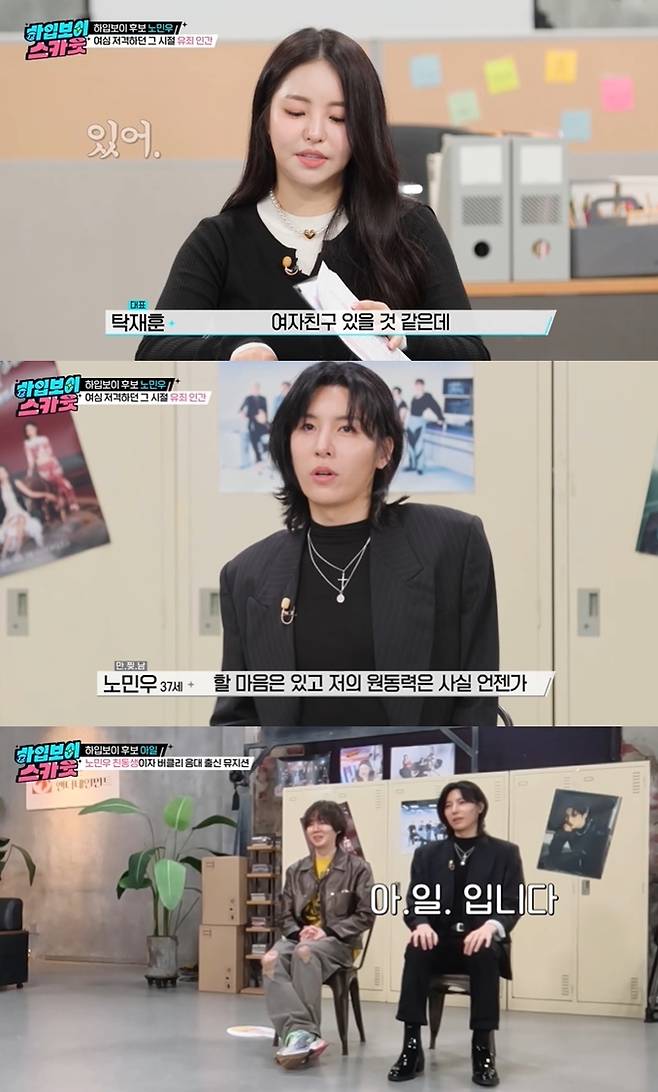 MC 탁재훈은 노민우에게 대뜸 "결혼 안 했냐"고 질문했다. "여자친구는 있냐"는 질문에 노민우는 "없다"고 답했다.