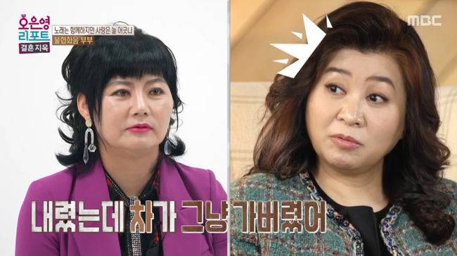 29일에 방송된 MBC '오은영 리포트 결혼지옥'에서는 트로트 가수 부부 이영재, 만송이가 등장해 불협화음 부부의 속내를 털어놨다.