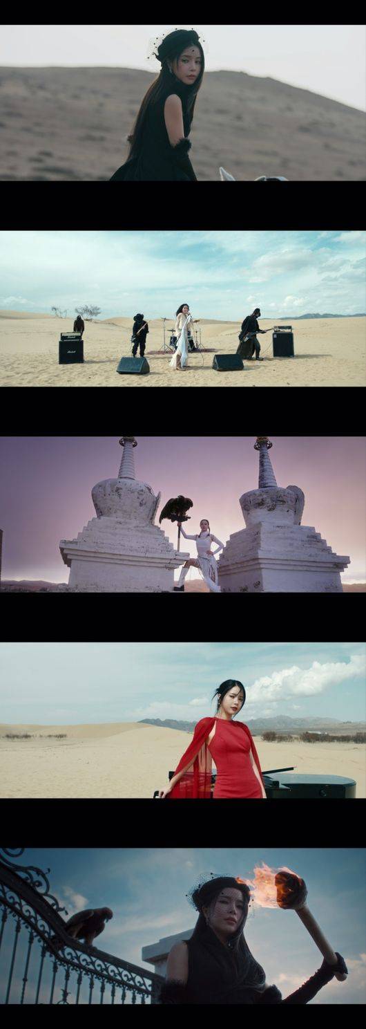 뮤직비디오로 보는 재미도 더했다. ‘벗 아이’의 뮤직비디오는 몽골 로케이션으로 촬영됐다. 록 밴드 보컬로 변신한 솔라는 광활한 사막 위에서 강렬한 카리스마를 보여줬다. 사막에서 피아노를 연주하고 백마를 타고 초원을 질주하는 등 영화 같은 압도적인 스케일의 영상미를 담아냈다. 분위기 변화가 큰 곡의 분위기와 잘 어우러진 영상미로 음악을 듣는 재미를 더욱 높였다.