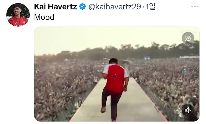 아스널 공격수 카이 하베르츠가 토트넘홋스퍼를 잡아낸 뒤 기분을 소셜미디어(SNS) X(구 트위터)를 통해 보여줬다.