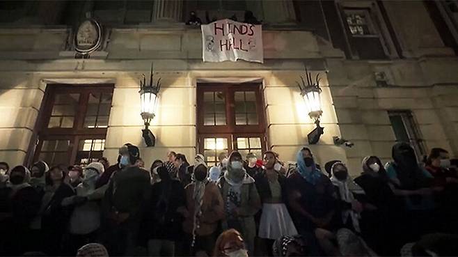 반전시위가 처음 시작된 미국 컬럼비아대에서는 한밤중 학생들이 학교 건물을 기습 점거했고, 학교 측은 정학 조치에 들어갔습니다.