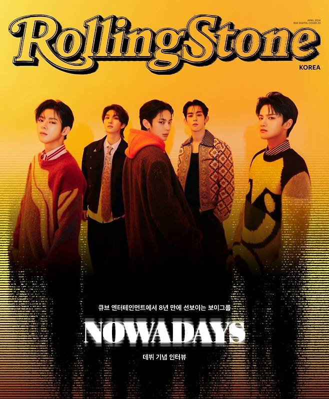 신인 그룹 NOWADAYS(나우어데이즈/현빈, 윤, 연우, 진혁, 시윤)가 롤링스톤 코리아 커버를 장식했다.
