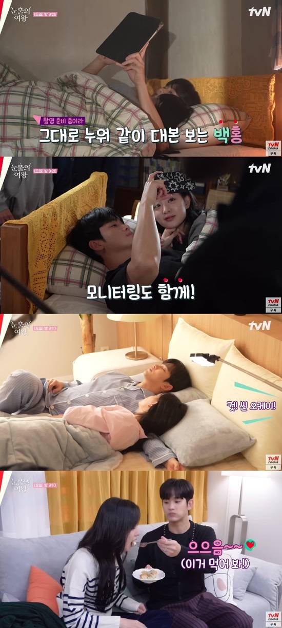 함께 붙어 모니터링을 하는 모습, 촬영 소품인 음식을 먹으며 장난치는 모습, '눈물의 여왕' 마지막 촬영에 울컥한 모습으로 포옹을 나누는 모습 모두 시청자들의 열광 포인트가 됐다.