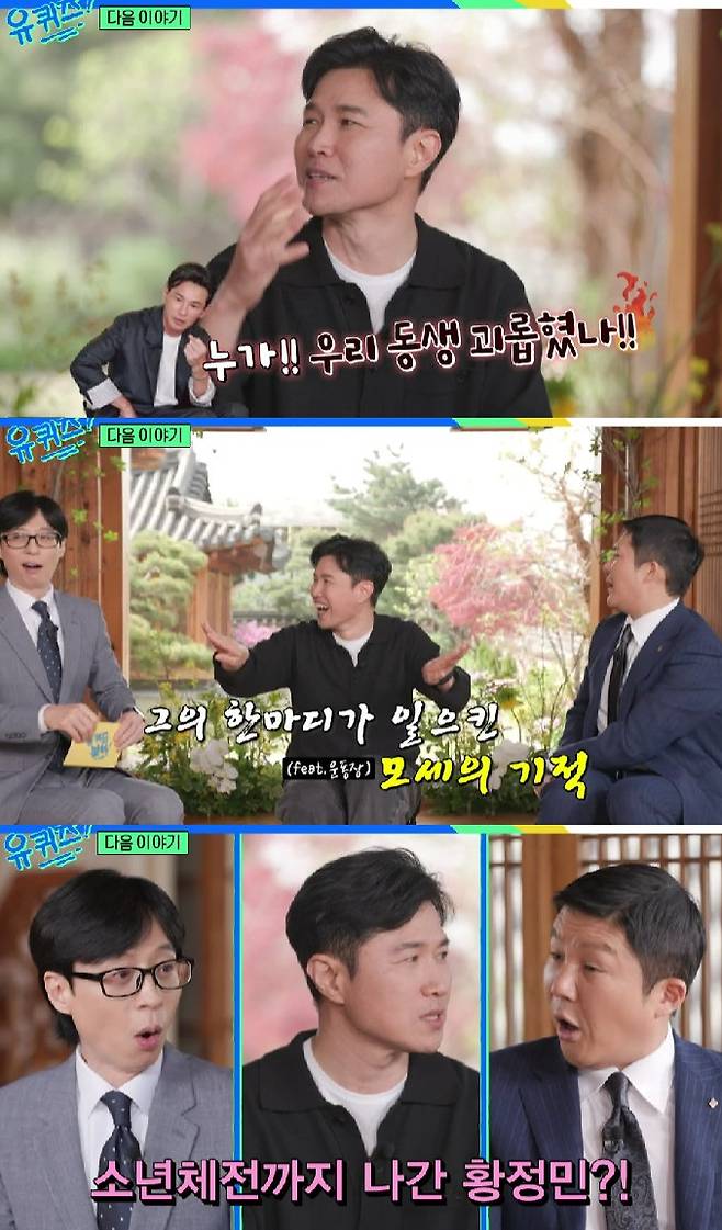 또한 황 감독은 "초등학교 때 형 황정민이 많이 도와줬다더라"는 유재석의 질문에 "'누가 우리동생 괴롭혔냐'라고 하면 쫘악 길이 갈라졌다. 형이 소년체전까지 나갔었다"며 황정민의 과거를 공개해 궁금증을 자아낸다.