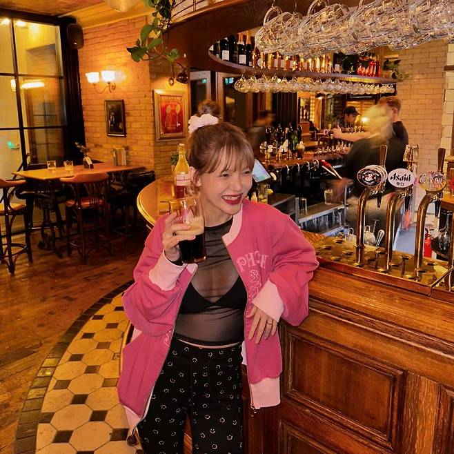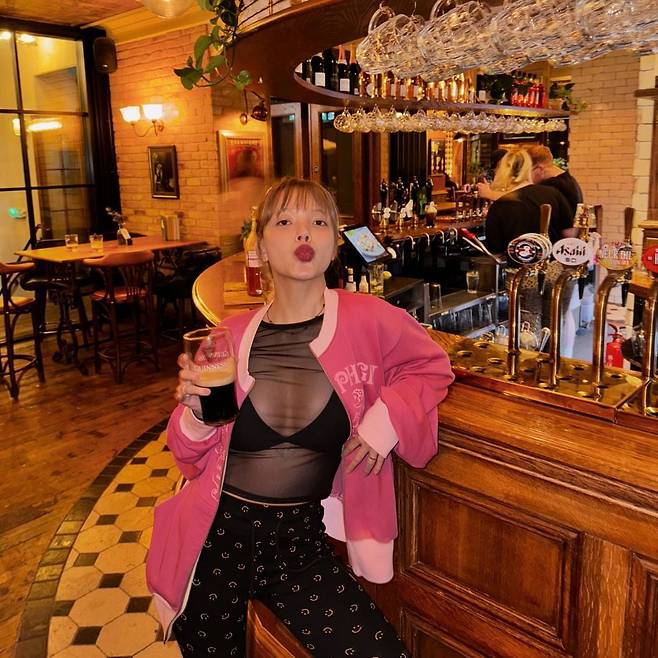 지민은 손에 흑맥주 잔을 든 채 다양한 표정을 짓고 있다. 검은색 시스루 의상에 분홍색 아우터를 걸쳐 편안한 무드를 더했다. 사진을 본 팬들은 "핫하다", "소화하기 어려운 패션을 찰떡같이 소화했네" 등 댓글을 달았다.
