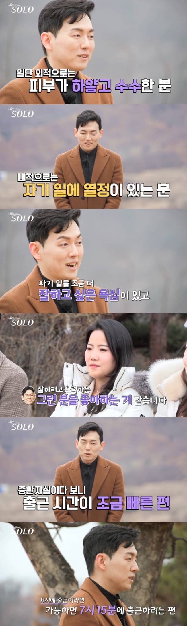 이어 "가장 큰 목표는 결혼이지만 그 목표 하나 때문이었으면 안 나왔을 것 같다. 나오기로 결심한 두 번째 이유는 그냥 경험 그 자체다. 좋은 경험이든 나쁜 경험이든 의미가 있다고 생각하고 결과보다는 과정에 집중하려고 한다. 결과에 집착하지 않고 순간순간에 할 수 있는 것에 최선을 다하면서 과정에 집중하는 자세로 솔로 나라 생활을 이어가겠다"라며 유창한 말솜씨를 자랑했다.