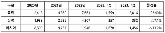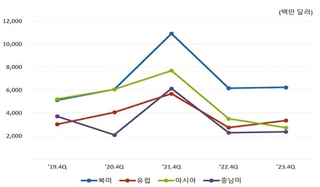 | ▲ [표 4] 제조업 지역별 투자(단위 : 백만 달러, 자료 : 수출입은행 해외직접투자 동향분석, 2023) |
