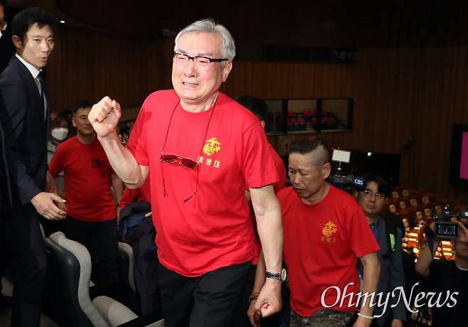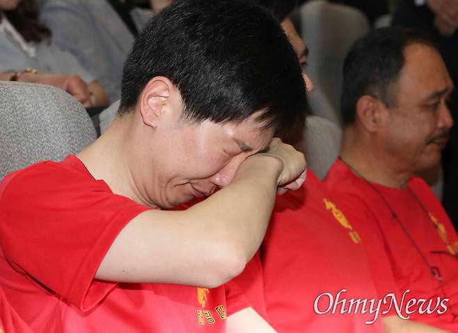 | ▲ 채상병특검법 국회 통과에 터진 눈물 채상병특검법이 2일 국회 본회의에서 국민의힘 의원들이 퇴장한 가운데 통과되는 것을 지켜본 해병대 예비역 연대 회원들이 눈물을 쏟으며 주먹을 불끈 쥐어보이고 있다. |