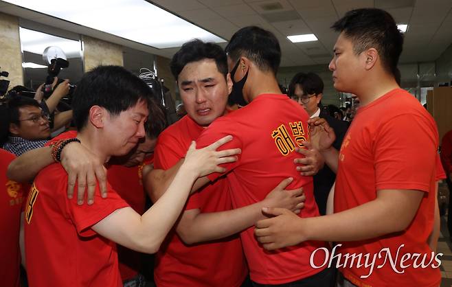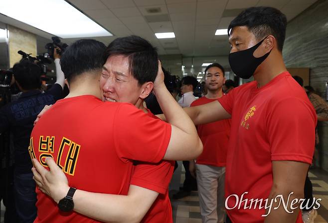| ▲ 채상병 특검법 국회 통과, 부둥켜 눈물 흘린 해병대 예비역 ⓒ 유성호 |