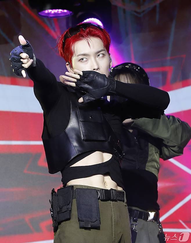 (서울=뉴스1) 권현진 기자 = 그룹 엘라스트(E'LAST) 라노가 2일 오후 서울 마포구 서교동 ㅎㄷ스테이지에서 가진 첫 번째 정규앨범 'EVERLASTING' 발매 기념 쇼케이스에서 타이틀 곡 ‘가솔린’을 열창하고 있다. 2024.5.2/뉴스1