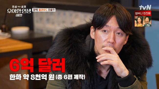 어떻게 연락이 온 거냐는 물음에 장혁은 “영화 ‘더 킬러’가 미국에서 개봉했다. 프리미어를 갔을 때 관계자들을 많이 만났다. 그래서 거기서부터 뭐가 있었다. 작품은 누구나 다 아는 작품을 하신 감독님이다”라며 “배우 뿐만 아니라 무술 감독도 제안을 주셨다. 총 6편 제작비가 6억 달러(한화 8천억 원)”이라고 밝혀 놀라움을 안겼다.