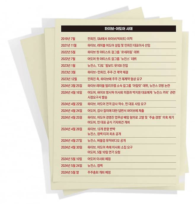 민희진 어도어 대표와 하이브의 갈등은 결국 법정에서 판가름나게 됐다. 공방이 길어지면서 둘 사이 갈등의 씨앗이 된 쟁점도 수면 위로 드러났다. 하이브의 목적은 분명하다. 민 대표 사임.