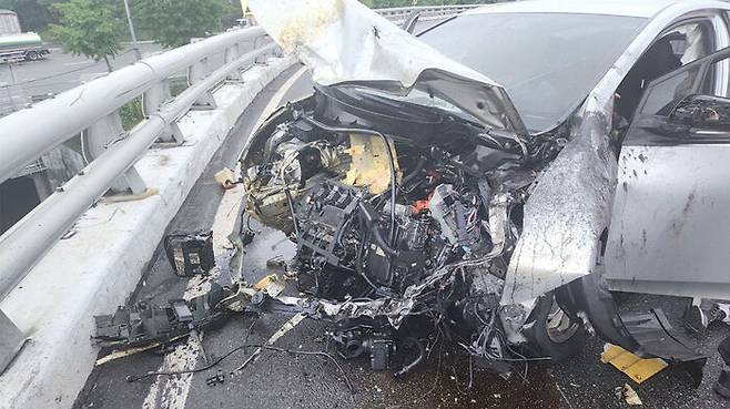 ▲ 원효대교 중앙분리대 들이받은 승용차