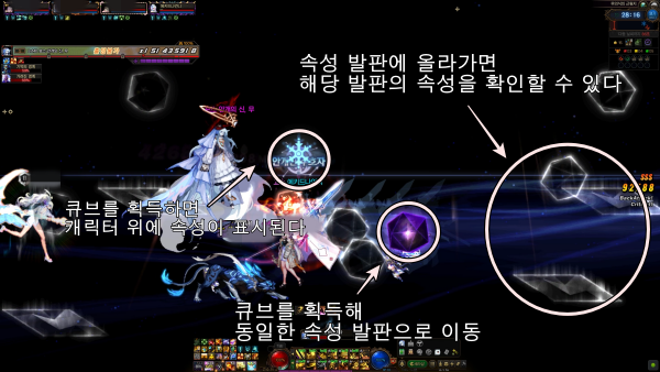 11, 1, 5, 7시 방향에 속성 발판이 소환되고, 중앙에는 큐브가 등장한다. 큐브를 획득한 후 획득한 큐브의 속성과 동일한 속성 발판으로 이동하면 패턴이 파훼된다. 발판의 속성은 플레이어가 직접 올라가서 확인해야 하며, 시간이 꽤 촉박하기 때문에 두 명씩 역할을 분담하는 것을 추천한다.
