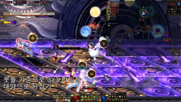 동시에 '태양의 기운이 타오릅니다' 패턴에 나왔던 흰색 장판이 소환된다. 동일하게 흰색 표식 수만큼 파티원이 올라가면 된다.