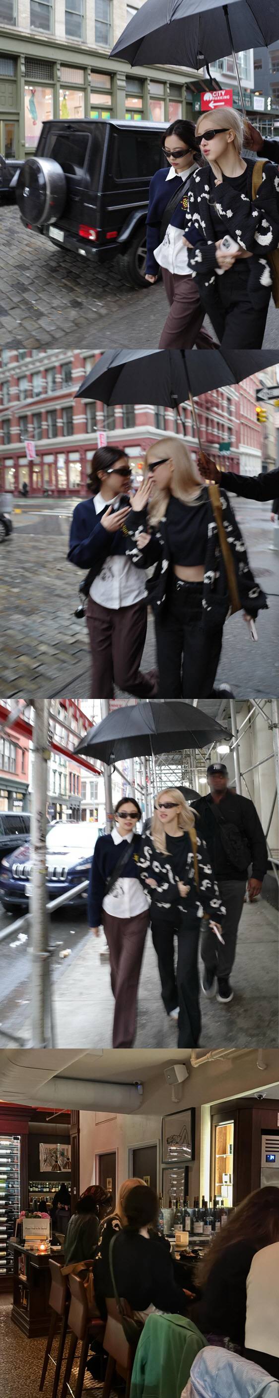 사진에서 로제는 제니와 만나 뉴욕의 길거리를 걷고 있는 모습. 두 사람은 최근 해외 일정 참석 차 미국 뉴욕을 방문했다.