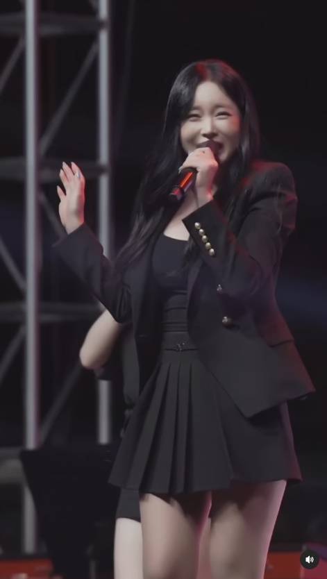 영상 속 홍진영은 반갑게 인사하며 무대 위로 올라가 '사랑의 배터리'를 열창했다. 하지만 바로 음악이 끊겼다. 홍진영은 당황하지 않고 "음악 주세요"라며 발랄하게 외쳤다. 그럼에도 음악이 안 나오자 다시 인사를 하며 분위기를 띄웠다.