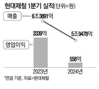 현대제철이 이처럼 차세대 모빌리티 강재에 열을 올리는 것은 장기간 이어지는 철강업계 실적 부진과 무관치 않다. 현대제철은 올해 1분기 연결 기준 영업이익 558억원을 기록했다. 전년 동기 대비 83.3% 감소한 수치다. 같은 기간 당기순이익은 322억원으로 86.2% 줄었다.