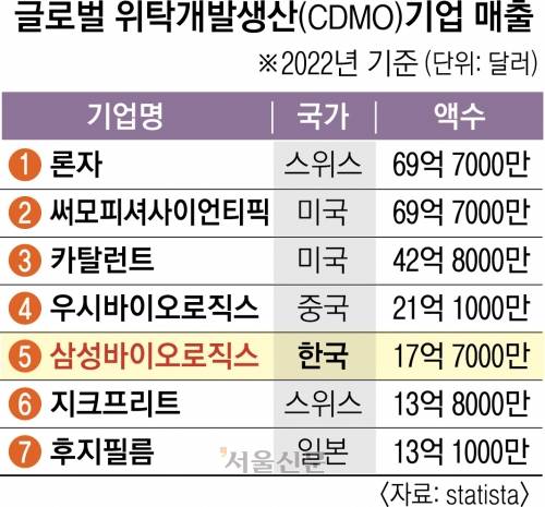 세계 1위 CDMO 기업인 스위스 론자는 지난 3월 미국 내 로슈의 바이오의약품 공장을 12억 달러에 인수하기로 했다. 지난 4월엔 일본 최대 CDMO 기업인 후지필름 다이오신스 바이오테크놀로지가 미국 내 제조시설 확장을 위해 12억 달러를 추가 투자한다고 발표했다. 미국은 2022년 기준 세계 바이오의약품 매출 62.9%를 차지하는 최대 시장이다.