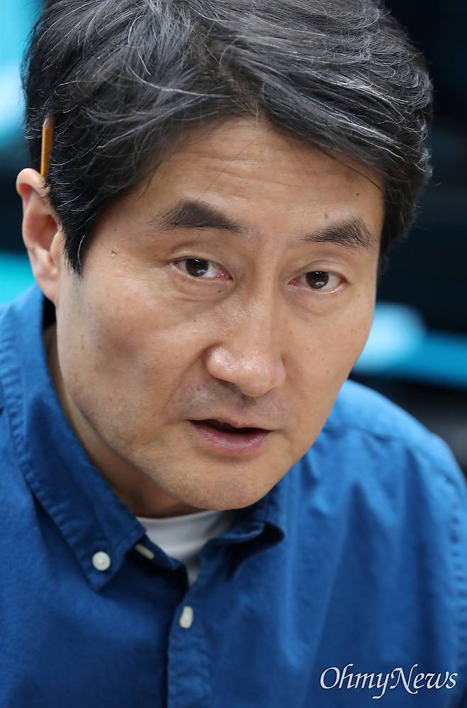| ▲ 김어준의 뉴스공장 '홍사훈의 경제쇼' 진행자인 홍사훈 전 KBS 기자가 4월 30일 오후 서울 서대문구 충정로 벙커1에서 <오마이뉴스>와 인터뷰를 하고 있다. |