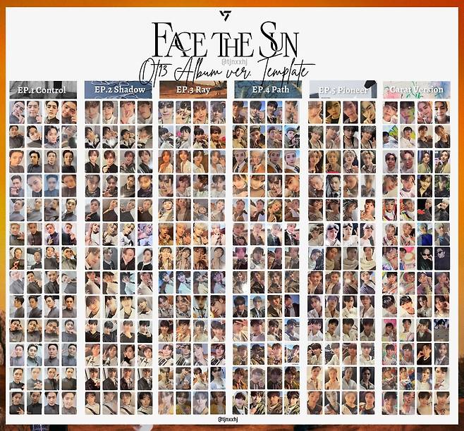 캡션 : 팬 커뮤니티에서 공유되는 그룹 세븐틴 'FACE THE SUN' 앨범의 미공개 포카 리스트