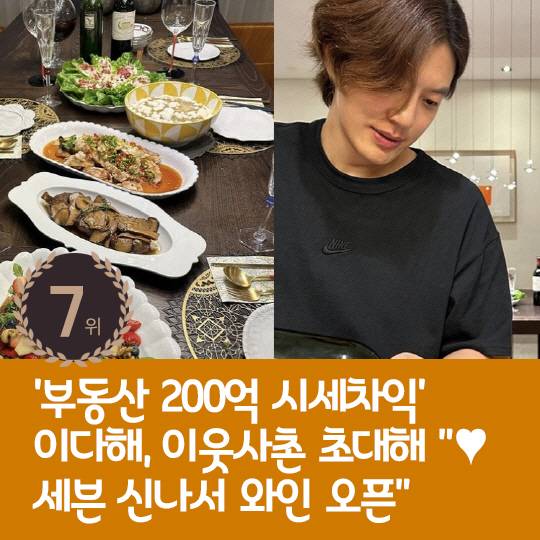 7위 : '부동산 200억 시세차익' 이다해, 이웃사촌 초대해 "♥세븐 신나서 와인 오픈"