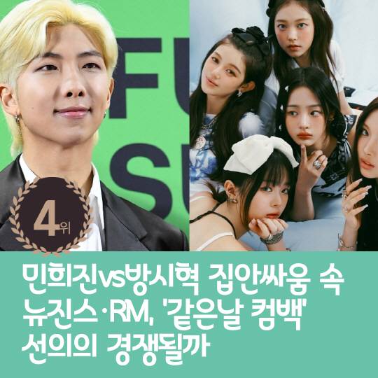 4위 : 민희진vs방시혁 집안싸움 속 뉴진스·RM, '같은날 컴백' 선의의 경쟁될까