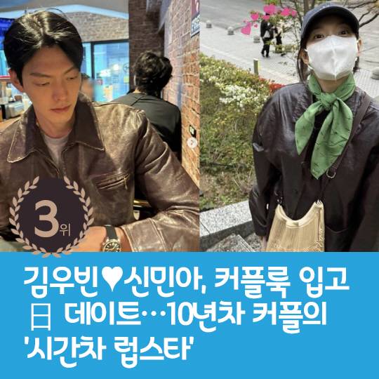 3위 : 김우빈♥신민아, 커플룩 입고 日 데이트…10년차 커플의 '시간차 럽스타'