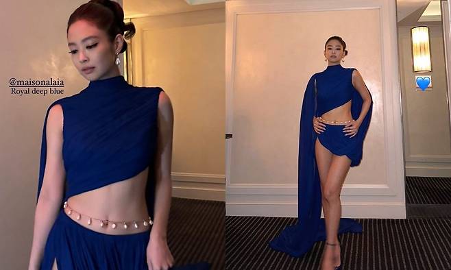 제니, 노출도 고급스럽게...골반·허리 절개 드레스 입었다
