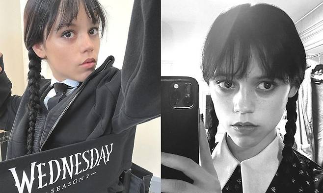 공개된 사진 속 제나 오르테가는 '웬즈데이'의 시그니처 헤어스타일인 양 갈래로 땋은 짙은 검정 머리에 머리부터 발끝까지 블랙으로 가득한 스타일링을 선보였다. 제나 오르테가는 지난 2022년에 방송된 시즌1로부터 2년이 지났음에도 여전한 '동안미모'를 자랑해 많은 이들을 깜짝 놀라게 했다.