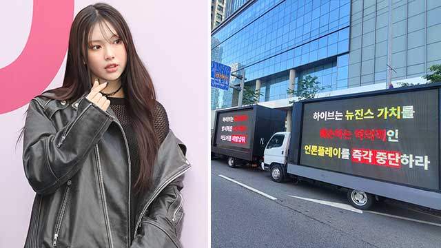 뉴진스 혜인 부상으로 공식 활동 불참…버니즈 하이브 앞에서 트럭 시위