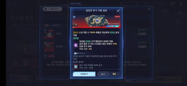 광 속성 무기인 킬더울프는 스토리에서 기본으로 주는 1돌파 그림자의 낫이 암 속성이기 때문에 암 속성 방어 속성인 던전에서 빛을 발한다. 자체 성능 역시 브레이크와 받는 피해량 증가로 훌륭해 리세마라 대상으로 추천한다.