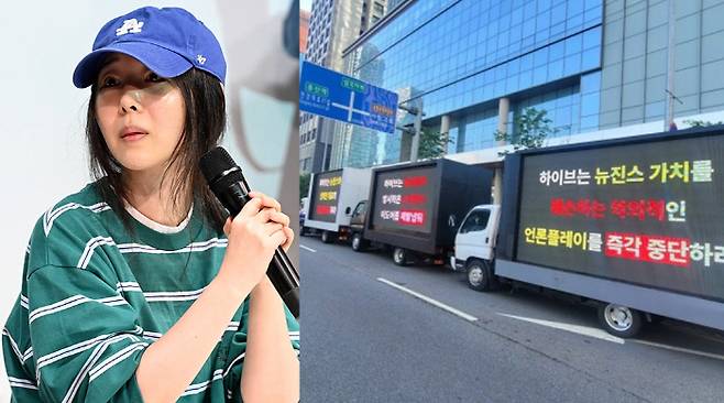 "좀 내버려둬" 뉴진스 팬덤 뿔났다...하이브 사옥 앞 '트럭시위'[종합]