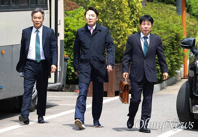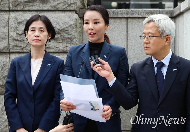 | ▲ 이정섭 대전고검 검사(가운데)가 8일 오후 각종 비위 의혹 관련 탄핵 심판 1차 변론에 출석하기 위해 서울 종로구 헌법재판소에 도착하고 있다. |