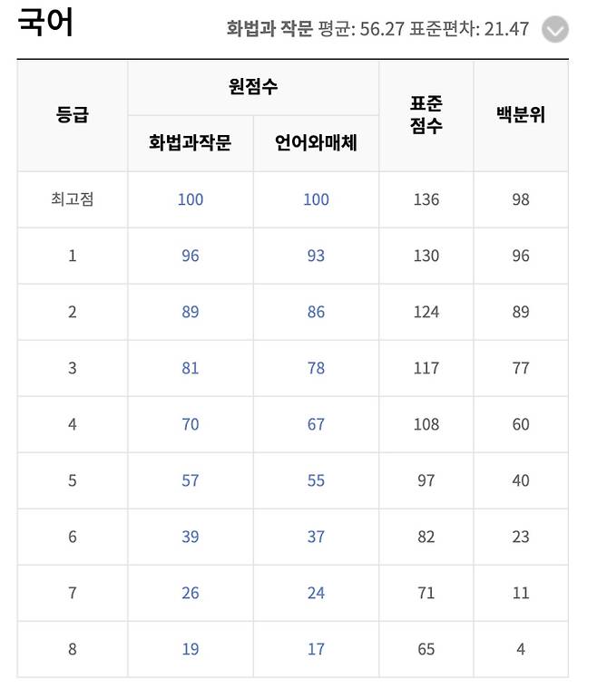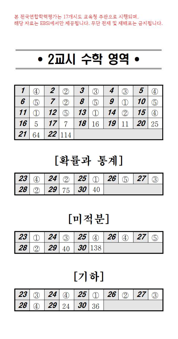 같은 날 오후 7시 30분 EBS i가 발표한 등급컷에 따르면 1등급 기준 국어 130점, 수학 139점이었다.
