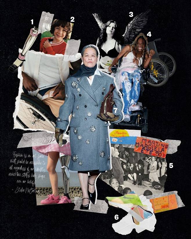 이처럼 모델이 아닌 일반인이 런웨이에 오르는 일은 최근 들어 부쩍 늘었고, 더 이상 놀랄 일도 아니다. 콜리나 스트라다의 디자이너 힐러리 테이무어는 신체적 다양성을 고려한 모델 캐스팅과 사회적인 메시지, 특히 소외되는 커뮤니티의 투쟁을 담으며 패션의 역할에 대해 질문을 던진다. 모스키노 2022 S/S 컬렉션을 통해 데뷔하고, 매 시즌 콜리나 스트라다의 런웨이에 서는 아론 로즈 필립(런웨이에 오른 최초의 흑인 트랜스젠더이자 장애인 모델이다)은 데뷔 전인 2017년, X(옛 트위터)에 이렇게 썼다. “솔직히 내가 모델 에이전시 눈에 띄면 모두 끝이야! 너희 전 세계 말이야! 진정한 다양성의 시간이 왔다! 애들아, 가자!” 아론의 말을 증명하듯 마른 몸의 백인 여성 모델만 런웨이에 올리기로 유명했던 빅토리아 시크릿도 다운증후군이 있는 모델이나 다양한 신체 사이즈를 가진 이들을 모델로 기용하며 새로운 비전을 선언했다. 단순히 다인종 모델과 소수자를 런웨이에 등장시키는 것만이 해답은 아니지만, 소수자들이 설 수 있는 자리를 더 많이, 더 자주 만드는 것은 분명 중요한 일이다. 그리고 이것은 비단 런웨이 위의 이야기만은 아니다. 나이키가 출시한 플라이이즈 스니커즈는 뇌성마비를 앓는 한 소년이 보낸 한 통의 편지로부터 탄생했다. 나이키는 소년의 바람을 담아 타인의 도움 없이 손을 전혀 쓰지 않고도 신발을 신을 수 있는 기술을 개발했다. 타미힐피거의 어댑티브 컬렉션 또한 단추 대신 벨크로나 자석을 사용하고, 한 손으로 열 수 있는 지퍼를 다는 등 편의성을 고려한 의류를 선보인다. 여기서 짚고 넘어가야 할 점은 신체적 장애가 있는 이들만 착용하는 옷이 아닌, 장애인과 비장애인 모두가 즐길 수 있는 옷이란 사실이다.