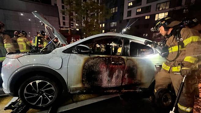 불이 난 차량은 전기차로, 앞서 차주는 이날 오후 5시 10분쯤 차량을 주차한 뒤 자택으로 간 것으로 조사됐습니다.