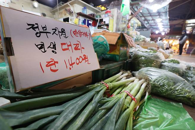 | ▲ 정부가 물가 부담 완화를 위해 오는 4월 12일까지 서울 전통시장 16곳에 공급되는 사과, 대파, 오이, 애호박 등에 대한 납품 단가를 지원한다고 밝혔다. 사진은 해당 전통시장인 4월 10일 서울 마포구 마포농수산물시장. |