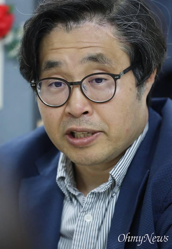 | ▲ 우석진 명지대 경제학과 교수가 7일 서울 서대문구 명지대 연구실에서 오마이뉴스와 인터뷰를 하고 있다. |