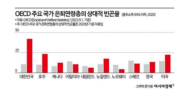 우리나라 노인빈곤율은 경제협력개발기구(OECD) 회원국 중 가장 높다. 동시에 65세 이상 노인 고용률 역시 우리가 OECD 회원국 중 가장 높은 수준이다. 일하는 노인은 많지만 일해도 빈곤에서 벗어나지 못한다는 뜻이다. 정부는 기초연금제도를 개선해 안정적인 노후를 보장하고, 양질의 노인 일자리 확대와 은퇴 연령 상향 등을 추진하는 등 다양한 노인 빈곤 대책을 실행해야 한다는 지적이 나온다.