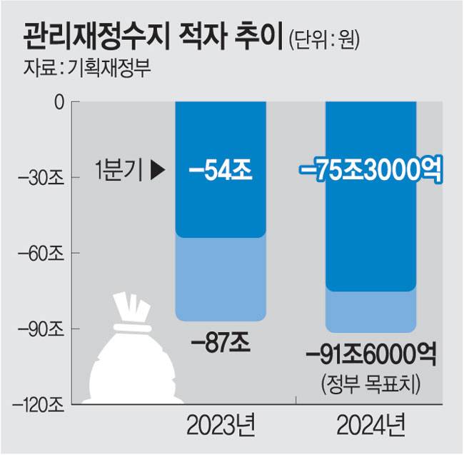 ‘텅 빈’ 나라곳간… 1분기 관리재정수지 75조 적자, 벌써 올 예상치의 82%