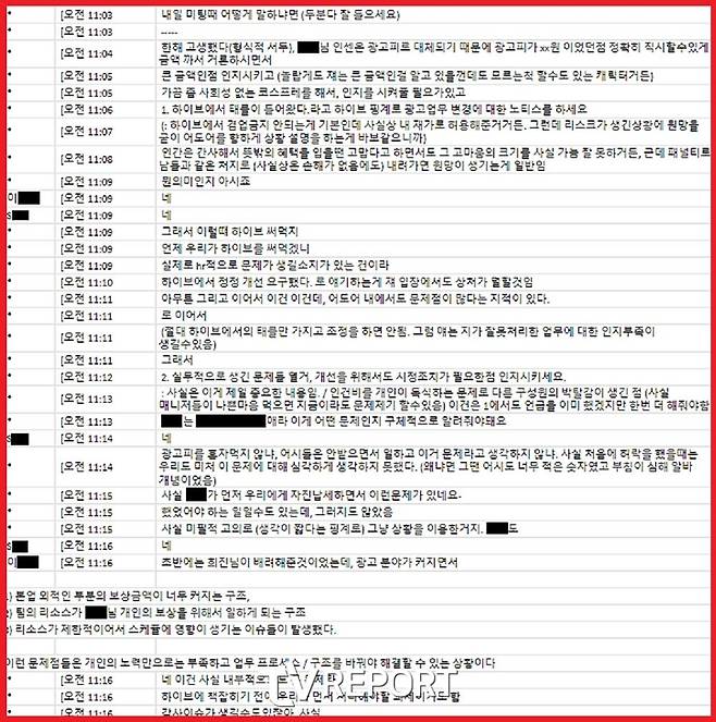 마지막으로 '통상적인 광고업계 관행이며 횡령이 성립할 수 없다는 주장'에 대해서는 "회사의 정직원이 광고주로부터 직접적으로 수억 원 대의 이익을 취하는 관행이란 없다"라고 강조했다. "회사의 매출로 인식돼야 할 금액이 사적으로 건네지고 이를 대표이사가 알면서 수년간 용인해 온 것은 관행이 아니라 명백한 불법이다"라며 "대표이사로서 민 대표는 불법 수취 금액에 대한 회수나 처벌 등 후속 조치에 전혀 착수하지 않고 있다. 당사는 팀장이 수취한 수억 원대의 부당 이익이 어디로 흘러 들어갔는지도 추후 조사 과정에서 명확히 밝혀지길 기대하고 있다"라고 전했다.