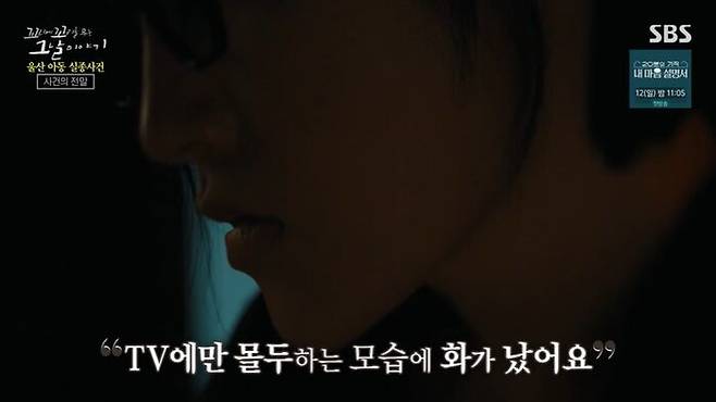 "아이가 1층 집에 있지 않고, 2층 할머니 방에 있던 데다가 TV에만 몰두하는 모습에 화가 났어요."