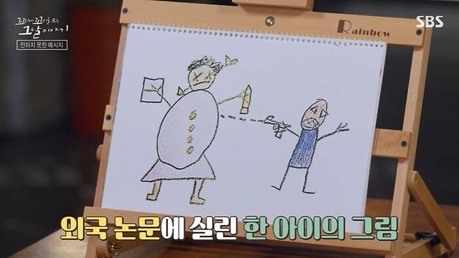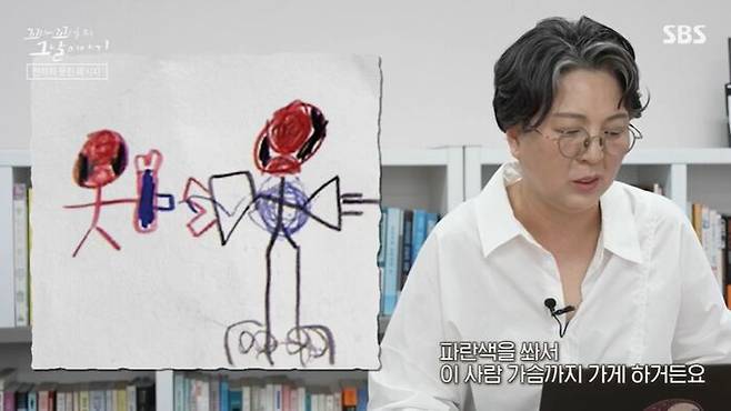 "보통 그림에서 수평적으로 그리는 게 건강한 그림이에요. 근데 위에서 그린 사람은 가해자, 위의 사람으로부터 스트레스를 받는다든지, 그것으로 인해서 조금 더 어려움을 갖고 있는…"