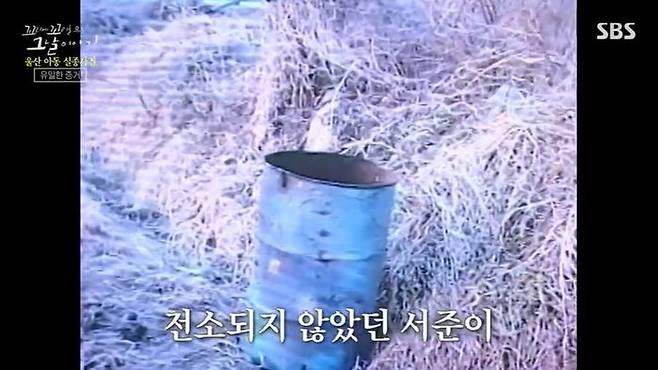 "저희들이 현장 검증 전에 서준이를 최초로 찾으러 갔을 때는 황량한 논 옆에 있는 폐드럼통에 심하게 불타 있는 상황이었습니다."