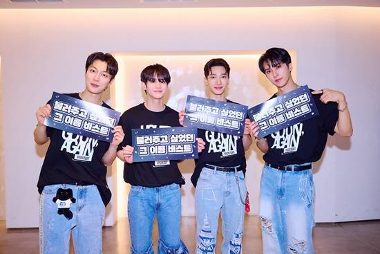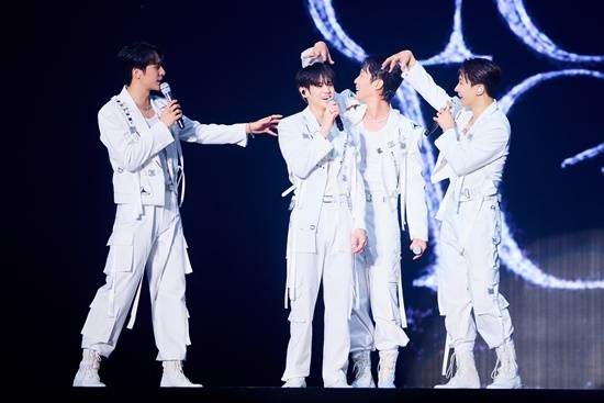 11일 오후 서울 송파구 올림픽공원 KSPO돔에서 열린 하이라이트(HIGHLIGHT, 윤두준·양요섭·이기광·손동운) 2024 단독 콘서트 '라이츠 고 온, 어게인(LIGHTS GO ON, AGAIN)'에서 멤버들이 큰 소리로 '비스트(BEAST)'의 이름을 외쳤다.